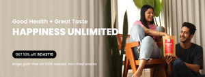 Indulge in the world of ready-to-eat healthy snacks, made with superfoods like nuts, seeds, berries, oats, that are roasted, cooked oil-free with only natural ingredients.