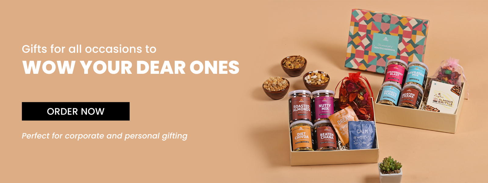 Indulge in the world of ready-to-eat healthy snacks, made with superfoods like nuts, seeds, berries, oats, that are roasted, cooked oil-free with only natural ingredients.