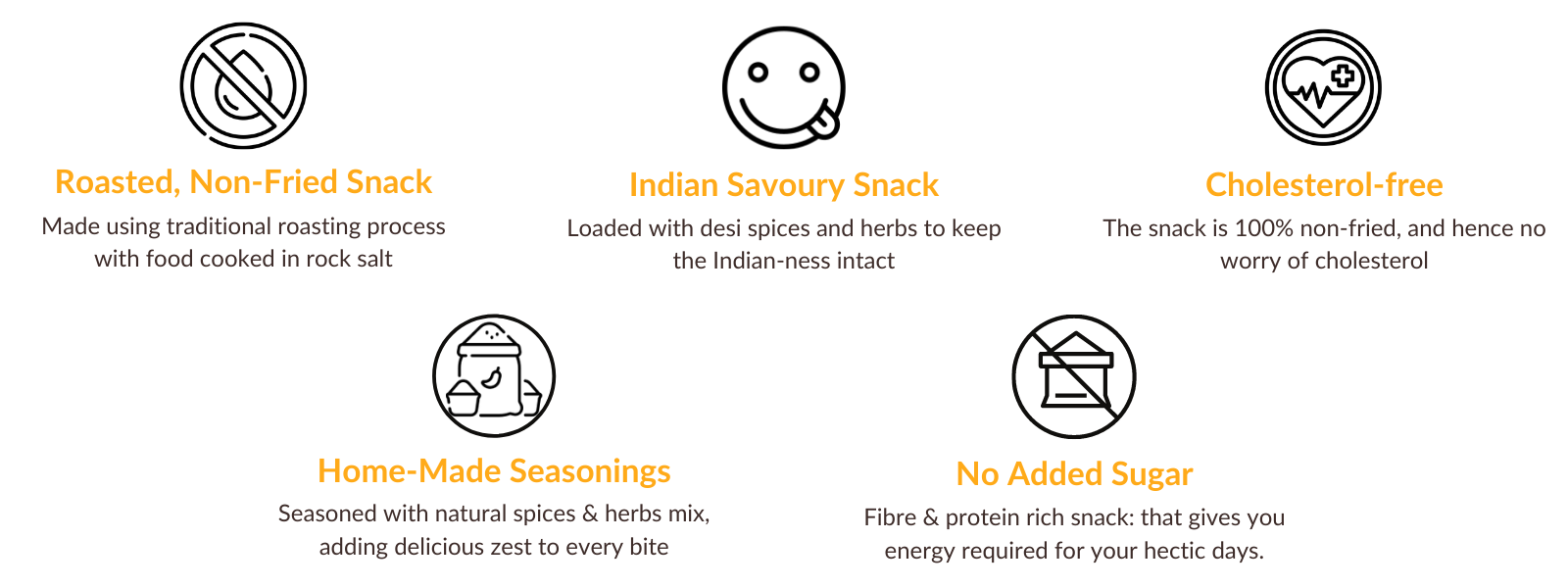 Our Millets & Chana is just like your desi ‘namkeen’, only that it’s roasted and oil-free, giving you enough reasons to switch to this healthy Indian snack. Enjoy guilt-free bingeing now.
