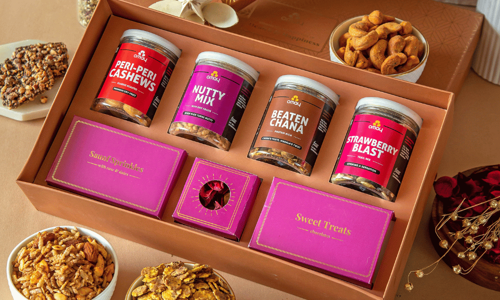 Get our Gift Boxes in bulk for your teams, colleagues, friends and family. Reach us via WhatsApp Helpline below (+91 6375922274) or email: hello@omayfoods.com