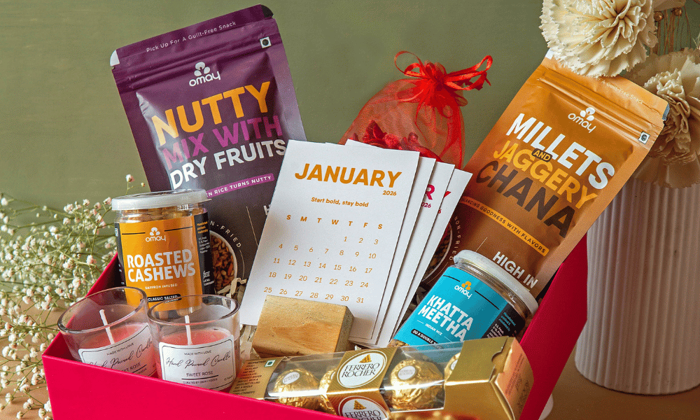 Get our Gift Boxes in bulk for your teams, colleagues, friends and family. Reach us via WhatsApp Helpline below (+91 6375922274) or email: hello@omayfoods.com