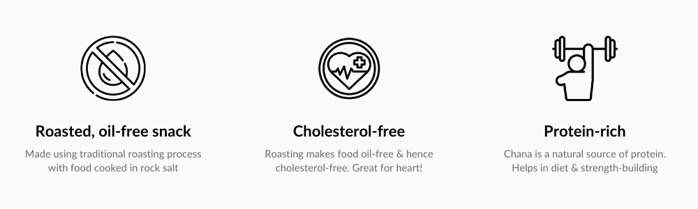 Popularly known as, "chana jor", we elevate this Indian snack by roasting the pressed-chana in salt, rather than frying in oil.