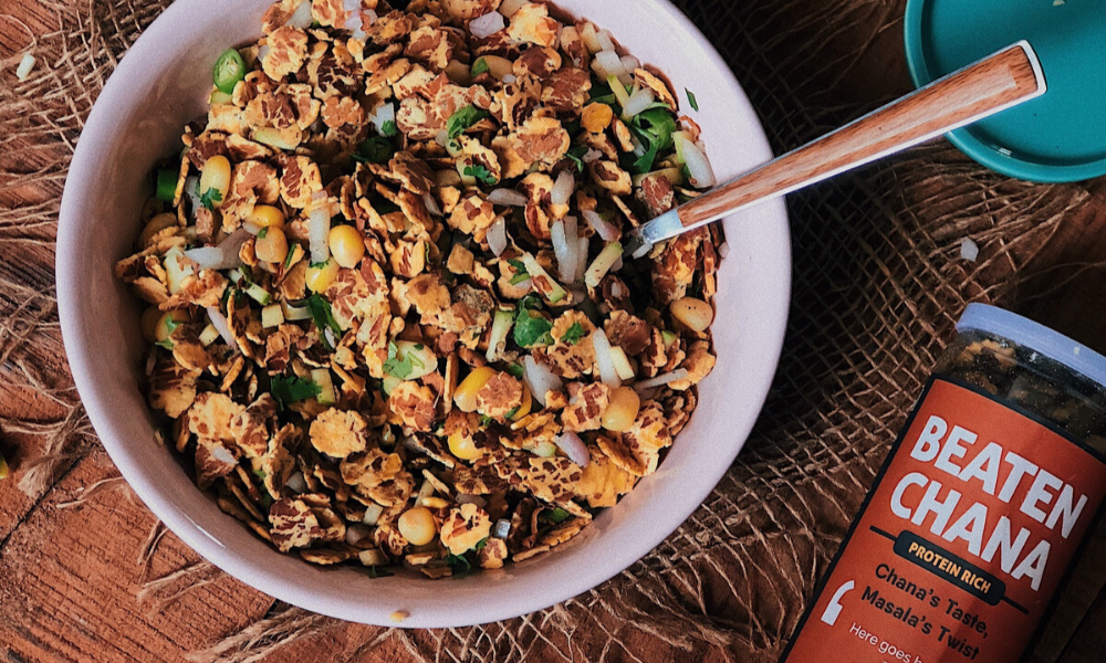 While you can eat Beaten chana as is, you can also make a healthy salad of it. Chop some veggies, add lemon juice and stir mix with Beaten Chana.