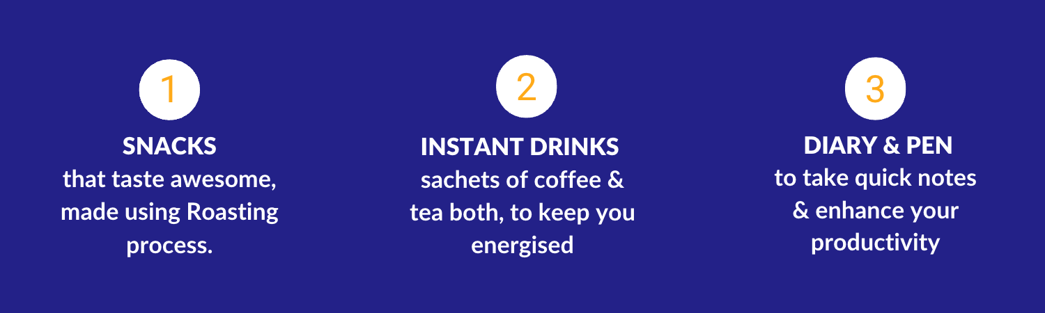 The 9 to 5 Binge box comes with included instant coffee & ready to go dhaba chai mix - to boost your day. Just add hot water & you can instantly feel fresh and focused!