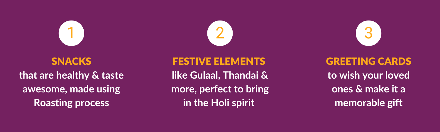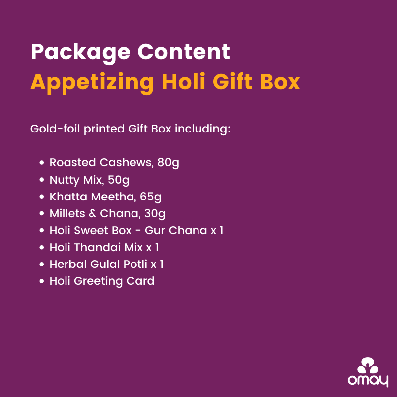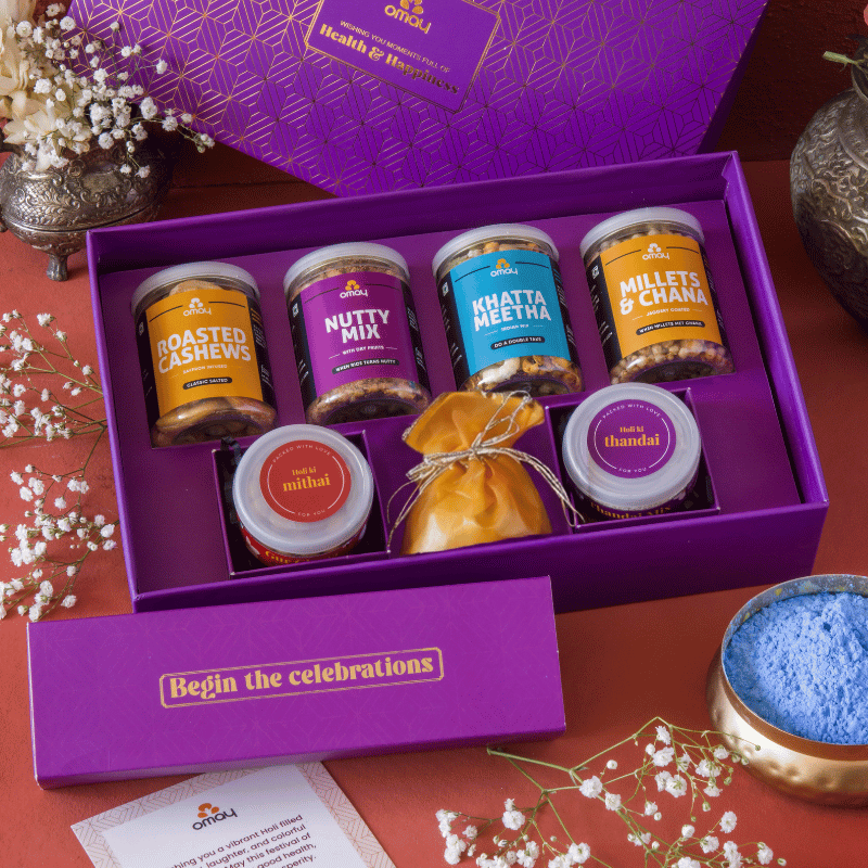 This Gift Box is packed with delicious healthy snacks, dry fruits, thandai, holi gulaal & many more festive essentials—making it the perfect choice for both corporate and personal gifting, adding extra joy to the festival of colours!