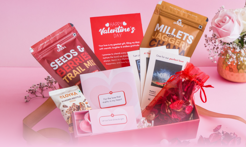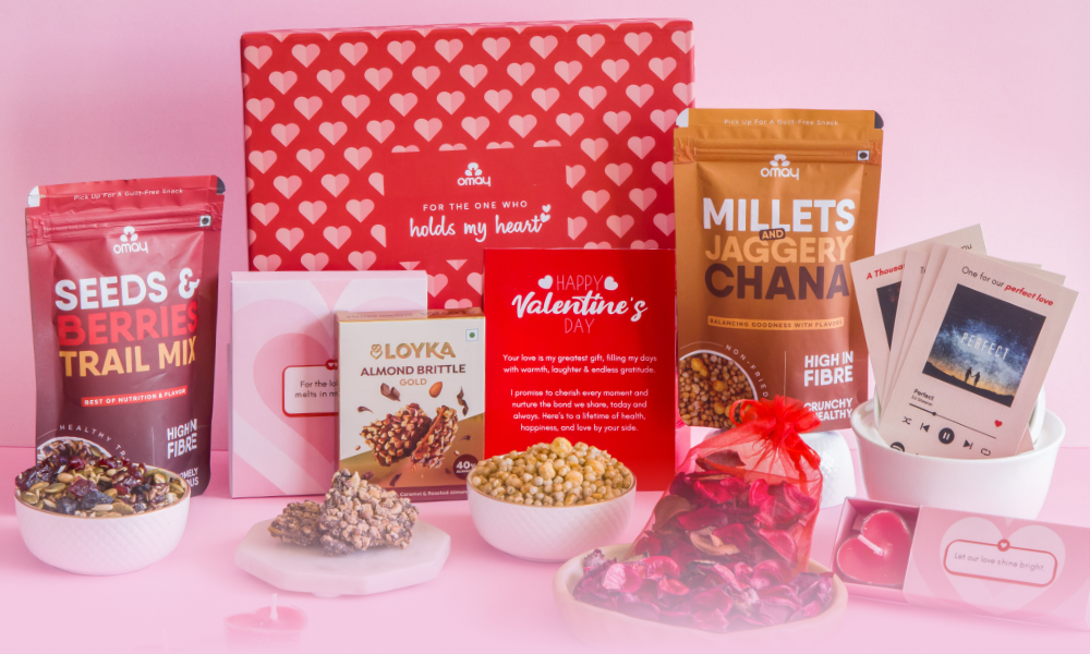 Packed with wholesome snacks, dry fruits chocolates, scented potpourri, romantic Spotify scan cards & much more, along with a custom Valentine's Day card – the perfect gift for your partner! Make their Valentine's day special, with Omay Foods.