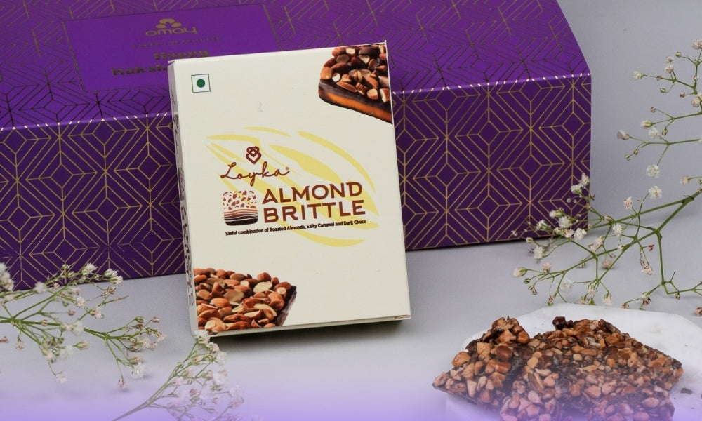 Celebrate Raksha Bandhan with Chocolate Almond Brittle are included in this gift box, adding a perfect touch of sweet extravagance to your Raksha Bandhan moments.