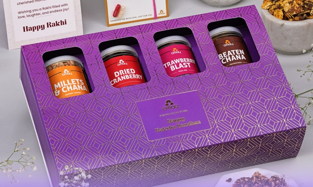 This Gift Box comes with the healthiest, tastiest snacks made using Rajasthan's Roasting process; food cooked in salt with no oil. Get the best Trail Mixes, Dry-Fruits, and Indian Snacks for your loved ones.
