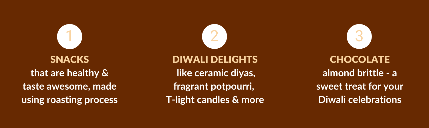 To brighten your Diwali celebrations. Beautifully packaged to enrich the ambiance and add warmth to your festive moments.