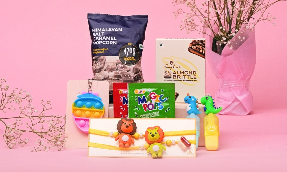 Treat your little siblings with the irresistible treats like Chocolate Almond Brittle, Caramel Popcorn, and Magic Pops. These delightful treats will add an extra layer of sweet extravagance to your Rakhi celebrations.