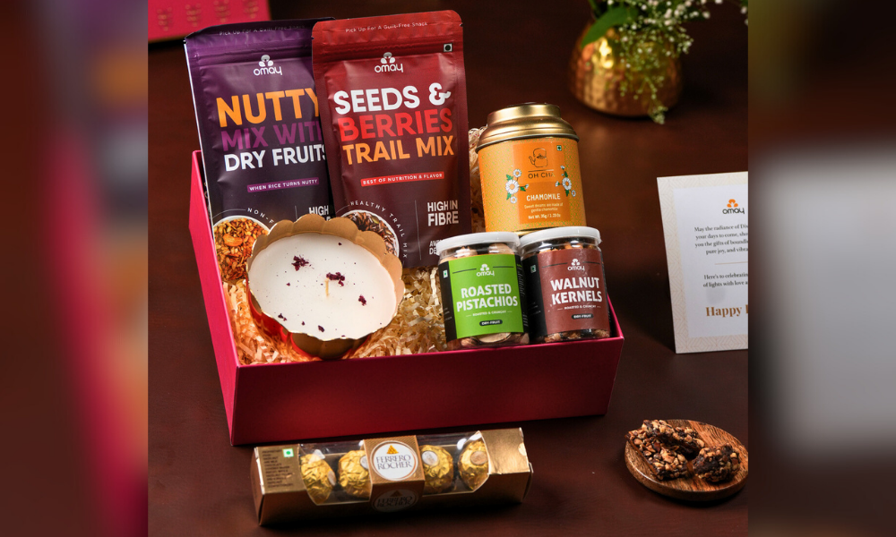This Omay Foods Diwali Gift Box is filled with delicious healthy snacks, dry fruits, chocolates , handcrafted Diwali essentials, and more making it an ideal choice for both corporate and personal gifting, adding extra joy to the festival of lights.