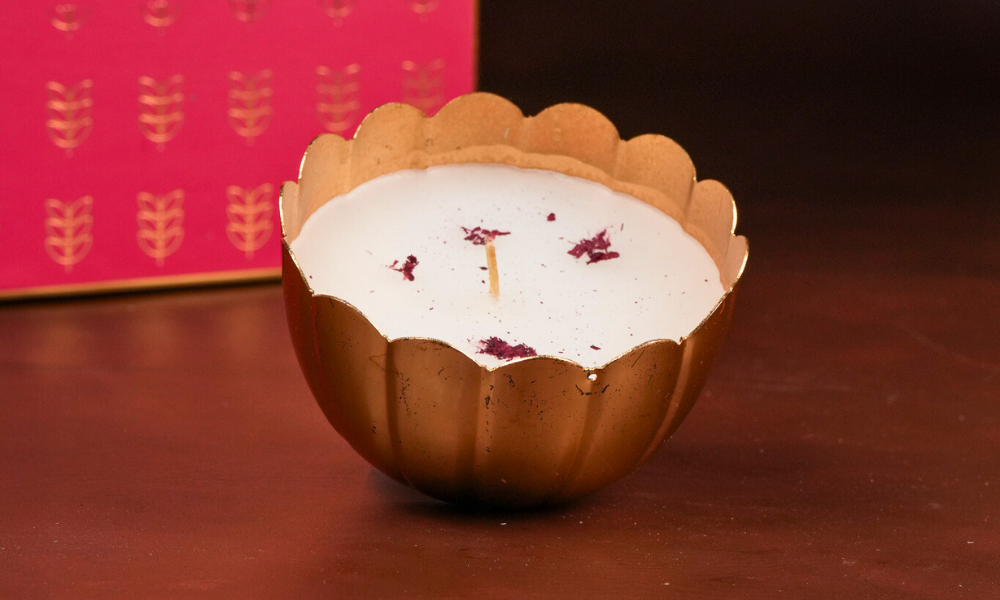Complete your Diwali celebrations with festive gift elements like an elegant brass urli candles. Thoughtfully designed to enhance the ambiance and illuminate the spirit of the festival.