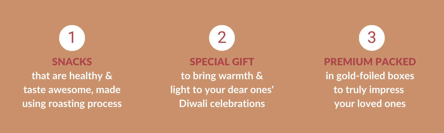 Packed with loads of delicious roasted dryfruits and festive delights. A perfect gift to bring warmth and cheer to your Diwali celebrations, perfect for corporate or personal gifting.