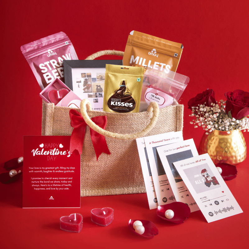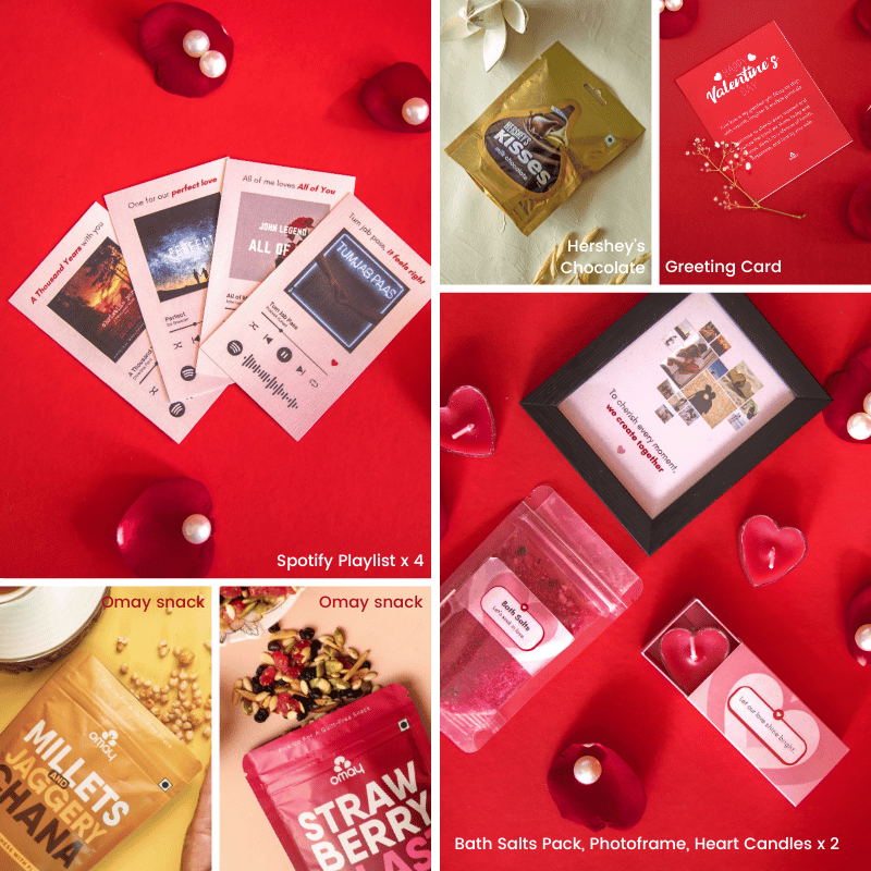 Romantic photo frame, bath salts, candles & much more added in this gift box. Thoughtful inclusions that make your gifting experience even more special with treats they'll admire & adore,perfect to bring warmth, joy, and love.