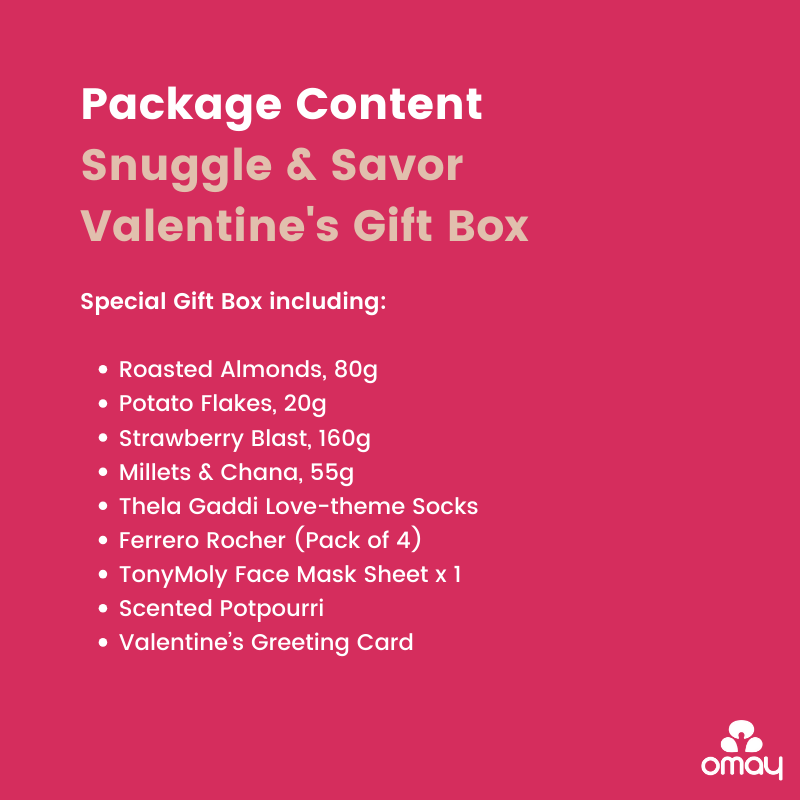 Packed with wholesome snacks, decadent chocolates, scrunchies, face masks and a custom Valentine's Day card – the perfect gift for your girlfriend, wife or galantine! Make their Valentine's day special, with Omay Foods.