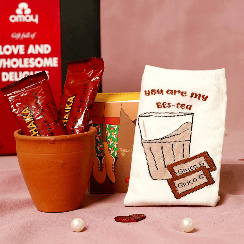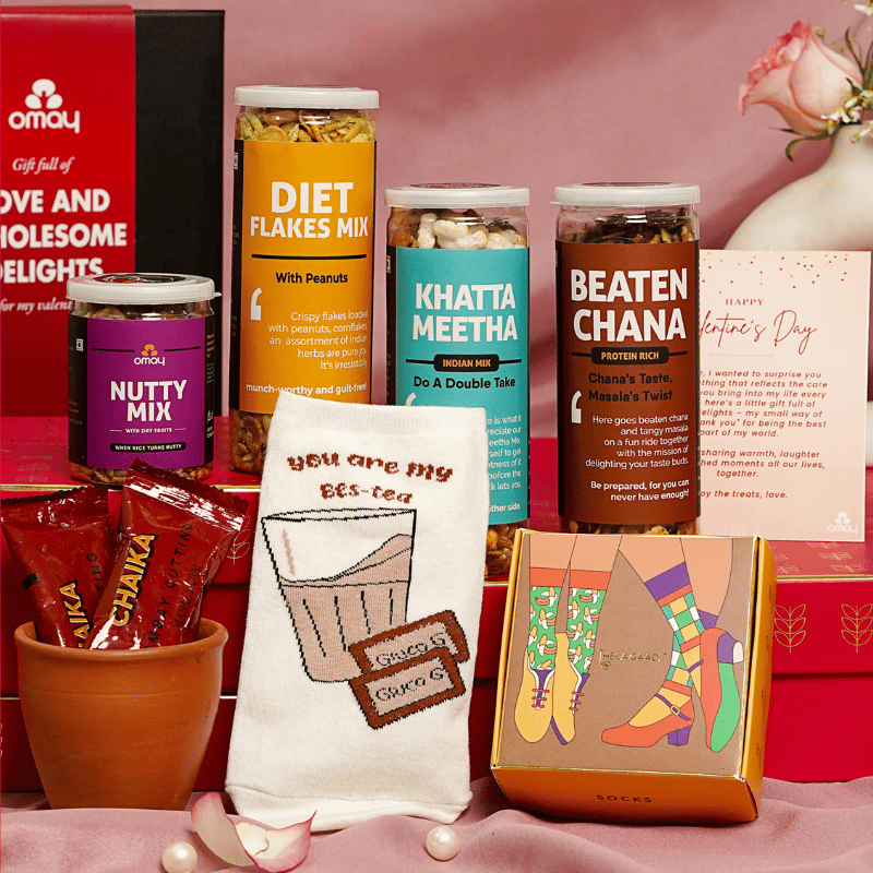 Packed with wholesome snacks, chai themed socks, and instant chai mix – the perfect gift for those who matter, whether it's a cherished friend, colleague, or loved one. Elevate any occasion with Omay Foods.