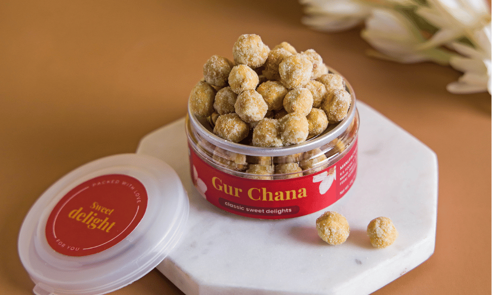 Chocolate Almond Dates, Delicious Gur Chana, Saunf Sprinkles, Refreshing Green Tea sachets & more, additions that brings a touch of sweetness to your celebrations. Perfect for enjoying and sharing with loved ones during the festive season.