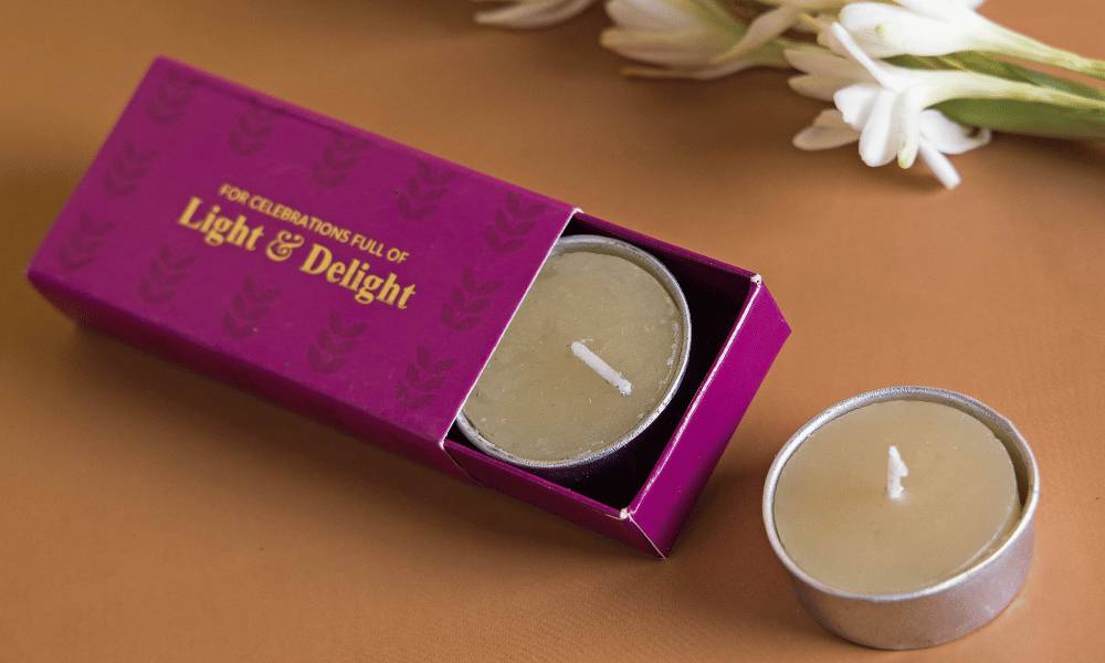 T-Light Candles & more included in the gift box to add light & warmth to your Diwali gifting. Brighten their festivities with treats they'll love!